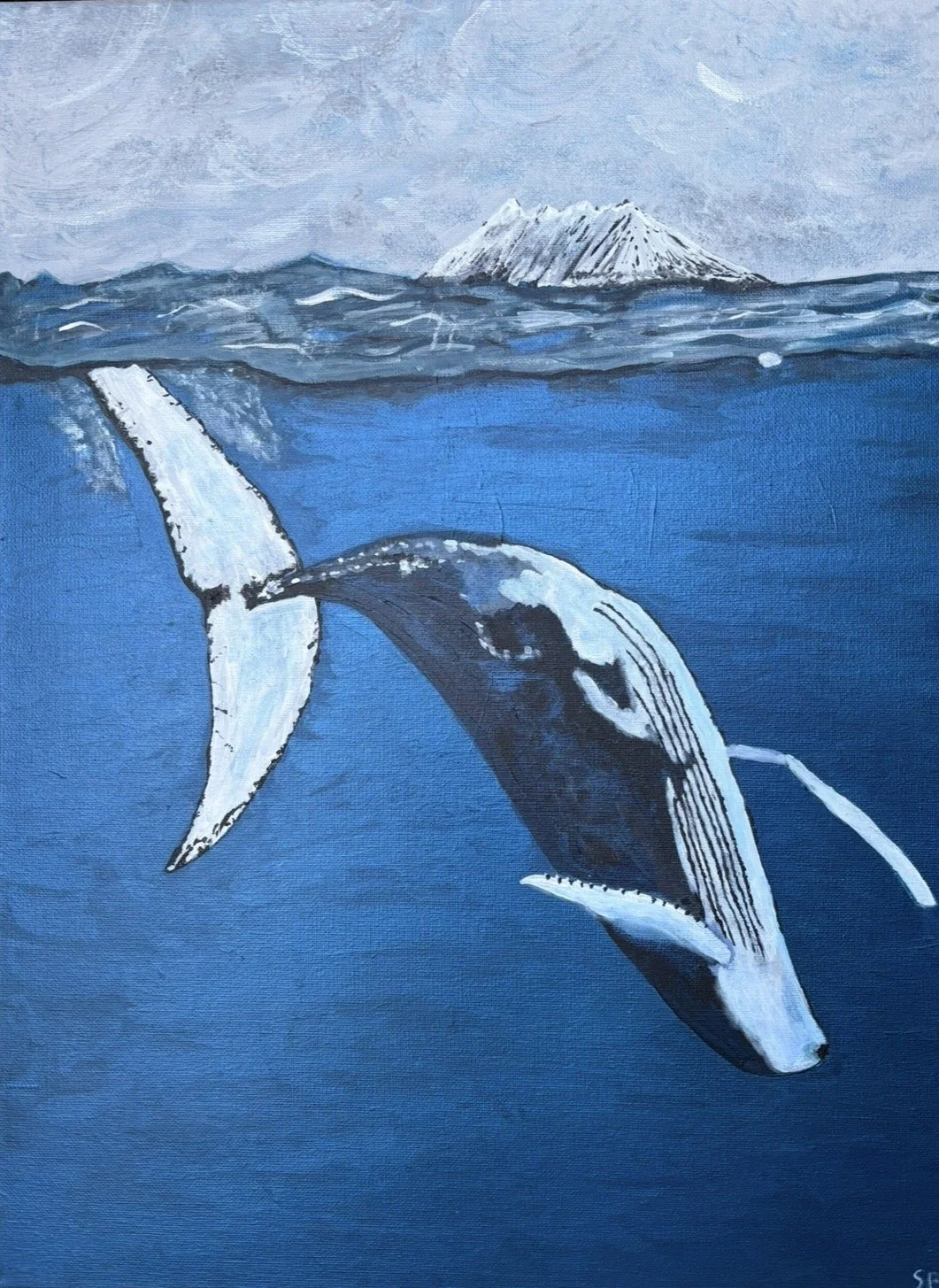 Humpback whale diving, painted in acrylic on canvas December 2025